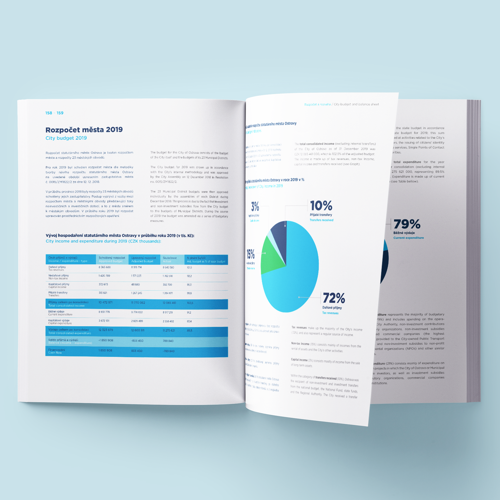 20. 10. 2020 / Výroční zpráva navazuje na jednotný vizuální styl města. Sazba a předěly jsou postaveny na ilustracích propojených s infografikou a číselnými údaji. Výroční zpráva je vytvořená v moderním a hravém grafickém stylu. Grafika jednotlivých předělů je postavena na barevných fotografiích dodaných objednatelem.